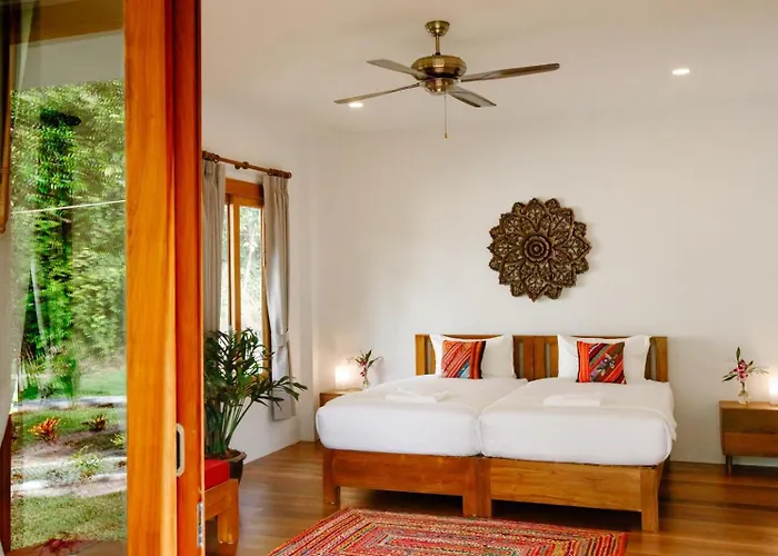La villa The Yogahouse Koh Phangan cuenta con una piscina y se encuentra a 4 km de la Bahía Chaloklum. Con vistas al jardín, la villa invita a los huéspedes a visitar el Ko Pha Ngan, situado a unos 25 minutos a pie.